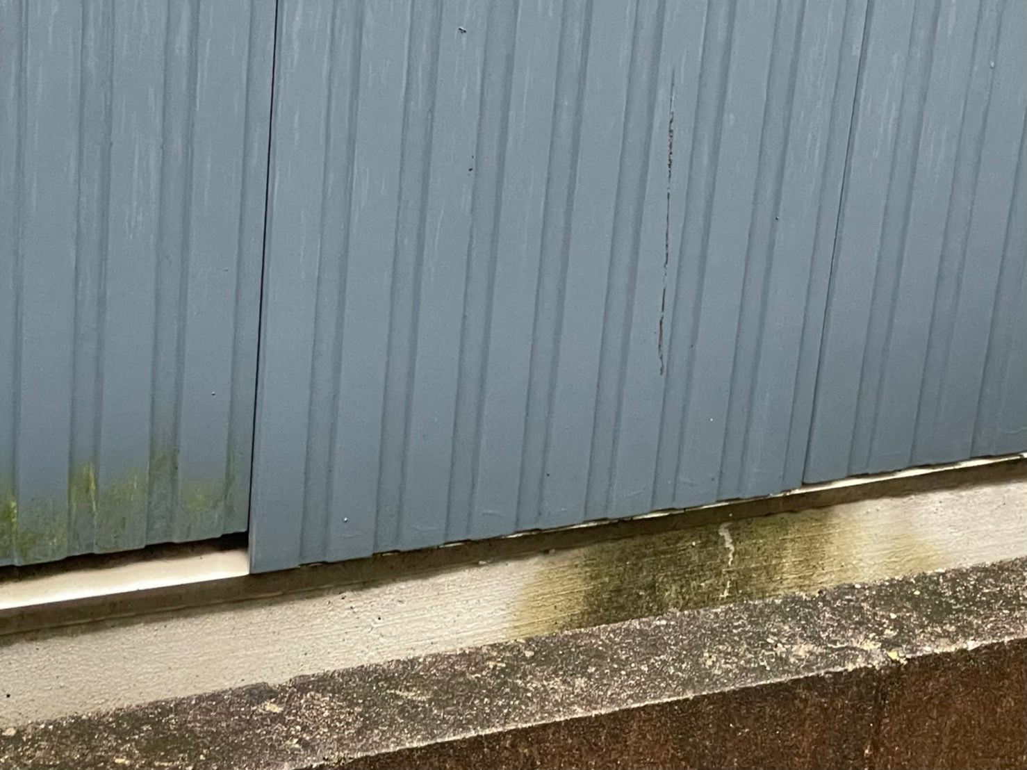 経年劣化による色褪せやカビ・コケが見られ、外装のサイディングがズレ落ちている現状でした。外壁からエントランス内部・駐車場ブロック塀すべてを高圧洗浄で頑固な汚れを落とし、鉄部等はケレン作業をしていきます。サイディングのズレは早急に修繕をさせていただきました。